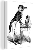 Canvas schilderij 150x100 cm - Wanddecoratie Herfst - Vogel - Illustratie - Muurdecoratie woonkamer - Slaapkamer decoratie - Kamer accessoires - Schilderijen