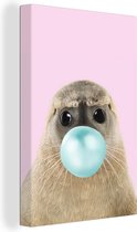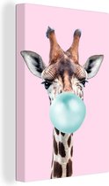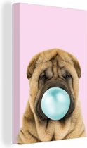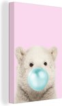 Canvas schilderij kinderen - IJsbeer - Kauwgom - Roze - Blauw - Kinderen - Meisjes - Canvas Meisjes - Muurdecoratie Meiden - Kids - 60x90 cm