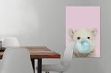 Canvas schilderijen - IJsbeer - Kauwgom - Roze - Blauw - Kinderen - Meisjes - Woonkamer - Slaapkamer