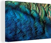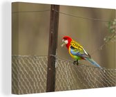 Canvas schilderij 150x100 cm - Wanddecoratie Knalblauwe parkiet op een dik touw - Muurdecoratie woonkamer - Slaapkamer decoratie - Kamer accessoires - Schilderijen