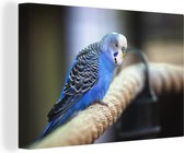 Canvas schilderijen - Knalblauwe parkiet op een dik touw - Woonkamer - Slaapkamer
