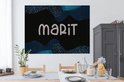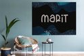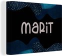 Ken je iemand met de naam ''Marit'' en betekent diegene veel voor je? Dan is dit ontwerp helemaal geschikt voor je! Zwarte letters spellen de naam ''Marit'' tegen een witte achtergrond met gekleurde vlekken. De vlekken zijn gekleurd in lichte tinten. Deze naam komt regelmatig voor als meisjesnaam.