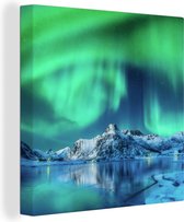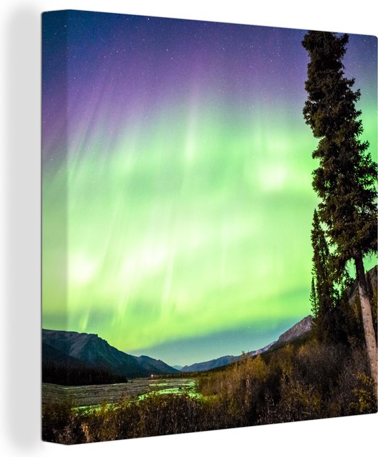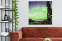 Canvas Schilderij Noorderlicht - Boom - Berg - Natuur - 90x90 cm - Wanddecoratie