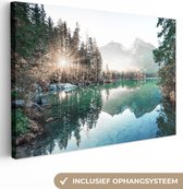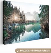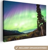 Canvas schilderijen - Noorderlicht - Boom - Berg - Natuur - Woonkamer - Slaapkamer