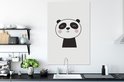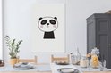 Een geïllustreerd beeld van een panda tegen een witte achtergrond. De panda is weergegeven volgens een simplistisch design. Deze weergave komt goed naar voren in een kinderkamer.