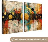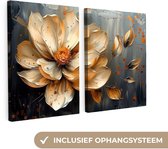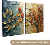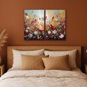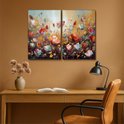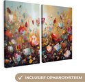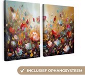 Canvas schilderij set 80x60 cm - Wanddecoratie tweeluik - Bloemen - Abstract - Verflook - Kleurrijk - Muurdecoratie woonkamer - Slaapkamer decoratie - Kamer accessoires - Schilderijen op canvas