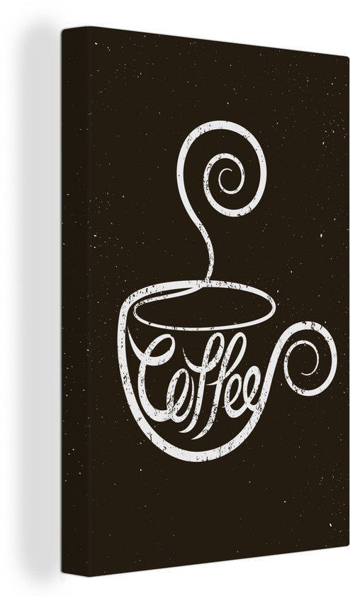 Canvas Schilderij Spreuken - Krijtbord - Quotes - Coffee - 20x30 cm - Wanddecoratie