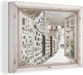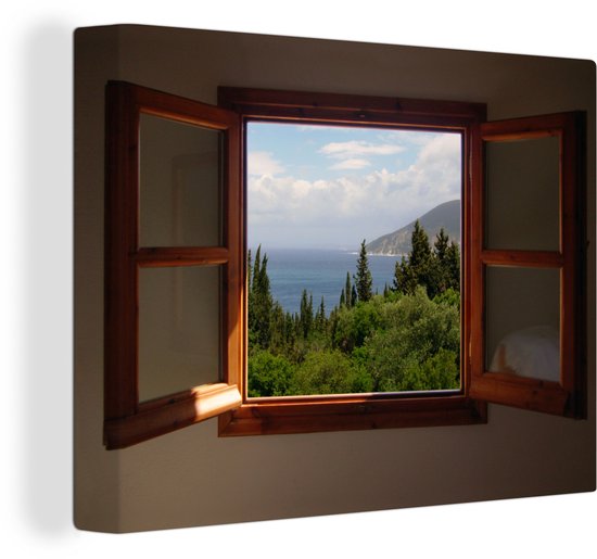 Canvas Schilderij Uitzicht in Griekenland - 40x30 cm - Wanddecoratie