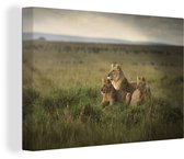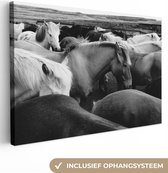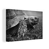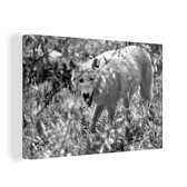 Canvas Schilderij Wild zwijn kalf in het gras - zwart wit - 120x80 cm - Wanddecoratie