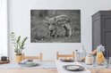 Canvas schilderijen - Wild zwijn kalf in het gras - zwart wit - Woonkamer - Slaapkamer