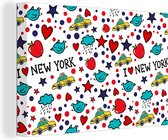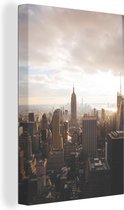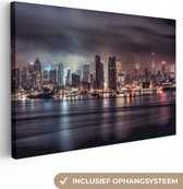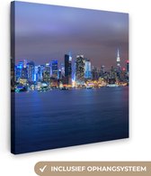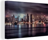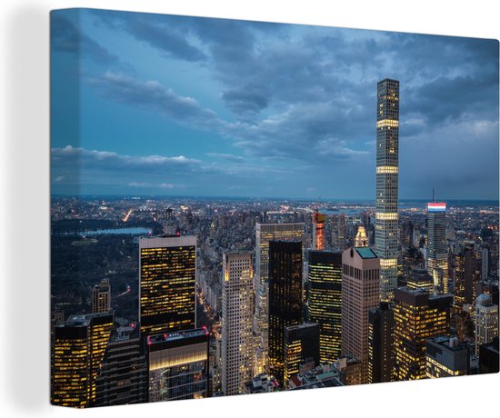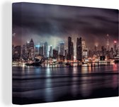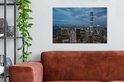Canvas Schilderij Wolkenkrabber - Nacht - Architectuur - New York - 90x60 cm - Wanddecoratie