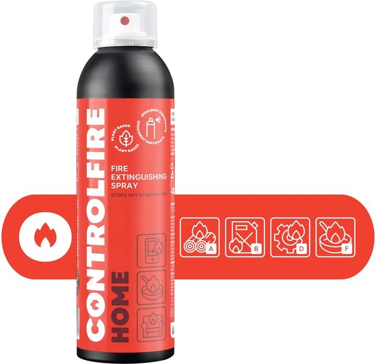 Control Fire Brandblusser 200 ml, mini brandblusser voor auto, keuken, lithiumbatterij, accu, kantoor, caravan, camper, elektrische branden, brandblusspray, brandklasse A B D F