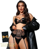 Met verstelbare haaksluiting aan de achterzijde is het setje eenvoudig aan trekken. Alle bandjes zijn verstelbaar en eenvoudig te combineren met verschillende kousen. Vind je een jarretellook toch niet voor jou, dan zijn de bretels eenvoudig af te nemen. Het open slipje zorgt voor een ondeugende afsluiter waarbij hete gedachtes werkelijkheid kunnen worden!