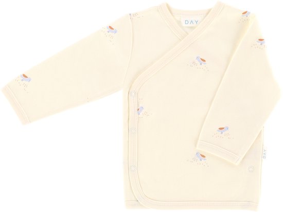 Het DAY Overslag T-Shirt - Cream - Mt. 50/56 is een zacht en comfortabel babyshirt met een handig overslagmodel. De drukknoopsluiting maakt het eenvoudig aan en uit te trekken zonder over het hoofdje te hoeven. De ademende stof voelt prettig aan op de huid, terwijl de neutrale cream kleur perfect te combineren is met andere babykleertjes.