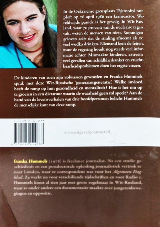 De kinderen van toen zijn volwassen geworden. Zij tasten nog steeds in het duister over de toedracht en gevolgen van de ramp. Franka Hummels schreef dit boek vanuit de menselijke invalshoek en sprak langdurig met Wit-Russen over de invloed van de gebeurtenis op hun leven. Aan de hand van gesprekken en onderzoek ter plekke onthult ze onbekende en soms schokkende feiten, die voor de Wit-Russen nauwelijks nieuws bevatten. Dat het radiologisch instituut nu frisdrank maakt, daar kijkt niemand van op. En natuurlijk schrik je niet als je zoontje aan iedere voet zes tenen heeft want dat hebben al zoveel kinderen.