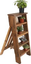 Houten trappetje met brede tree gemaakt van dennenhout. Erg leuk als decoratie voor zowel binnen als buiten.