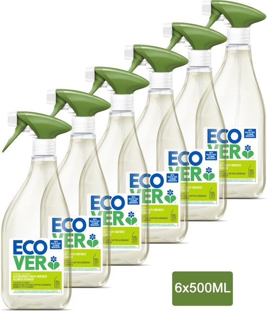Ecover Allesreiniger Spray Harde Oppervlakken - Voordeelverpakking 6 x 500 ml - Vet & vuil verwijderen - Plantaardig & Biologisch afbreekbaar - Citroengras & Gember geur