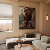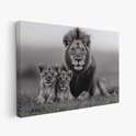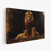 Canvas schilderij - Majestueuze leeuw met welpen - woonkamer - schilderij