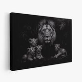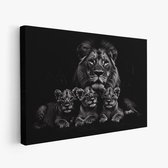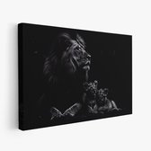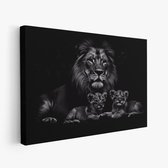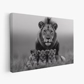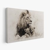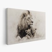 FineArtia - Majestueuze leeuw met welpen - Canvas Schilderij - 150 x 100 cm - Woonkamer Decoratie - Grijs;Zwart - Slaapkamer Schilderij - Wanddecoratie