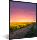Fotolijst incl. Poster - Bloemen - Weg - Lucht - Geel - Paars - Zonsondergang - Natuur - 30x40 cm - Posterlijst