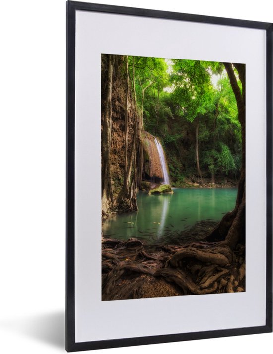 Fotolijst incl. Poster - Donkere kleuren rond de waterval in Thaise nationaal park Erawan - 40x60 cm - Posterlijst