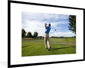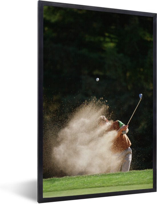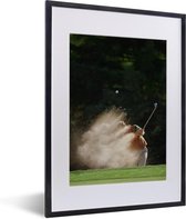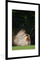 Fotolijst incl. Poster - Een mannelijke golfer slaat de golfbal uit de bunker op het green - 20x30 cm - Posterlijst