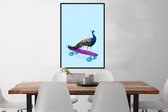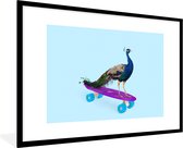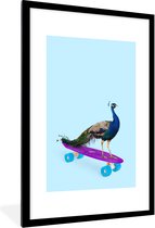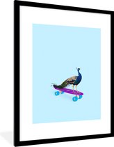 Lijst - Poster - Pauw - Blauw - Skateboard - Dieren - Grappig - Fotolijst