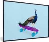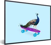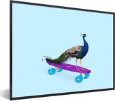 Fotolijst incl. Poster - Pauw - Blauw - Skateboard - Dieren - Grappig - 90x60 cm - Posterlijst