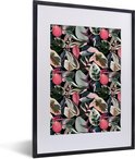 Fotolijst incl. Poster - Tropisch - Roze - Bladeren - 30x40 cm - Posterlijst