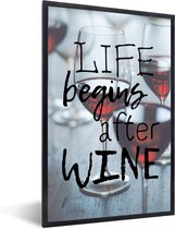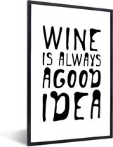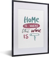Fotolijst incl. Poster - Wijn quote "Home is where the wine is" met kurkentrekker - 80x120 cm - Posterlijst