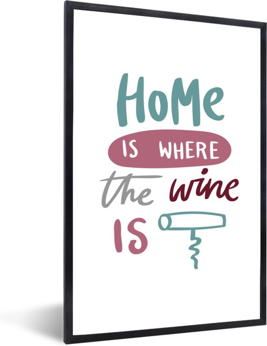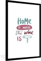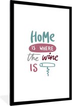Lijst - Poster - Wijn quote "Home is where the wine is" met kurkentrekker - Fotolijst