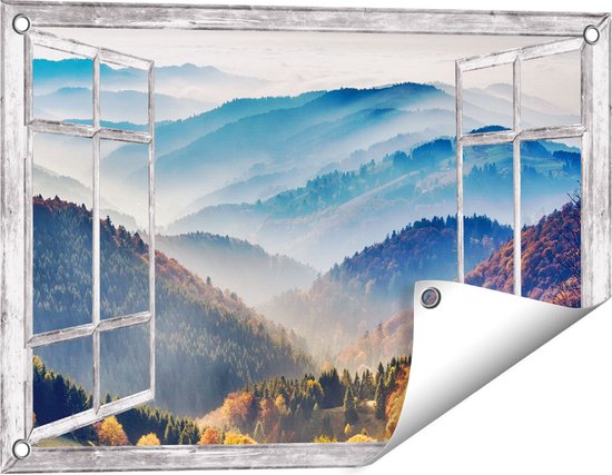 Gards Tuinposter Doorkijk Heuvel Landschap van het Zwarte Wout Bos - 60x40 cm - Tuindoek - Tuindecoratie - Wanddecoratie buiten - Tuinschilderij