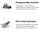 Maak gebruik van de 10 meegeleverde tiewraps en hang de tuinposter gemakkelijk en snel op. Zo is het een ideale uitkomst om zowel je tuin, schutting als balkon mee op te vrolijken. Het slimme ophangsysteem zorgt ervoor dat hij stevig hangt en voorkomt dat hij tussentijds loslaat.