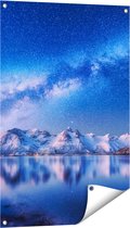 Gards Tuinposter Noorderlicht in de Bergen met Sneeuw - 60x90 cm - Tuindoek - Tuindecoratie - Wanddecoratie buiten - Tuinschilderij