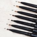 Longstay Precise Browliner aanbrengen:Breng de Browliner aan op de wenkbrauw, doe dit in een strepende beweging zodat het lijkt alsof je haartjes tekent. Zo kun je bijvoorbeeld gaatjes opvullen en op de plekken waar er wat minder haartjes zitten extra haartjes bijtekenen. Of breng de Browliner aan over de hele wenkbrauw geef deze eerst vorm en kleur deze daarna in. Je kunt de Browliner ook in combinatie met je eyebrow powder gebruiken om deze strakker te laten lijken. De Precise Browliner heeft een opdraai systeem en hoeft niet geslepen te worden. Gebruik de borstel achter op de Browliner om de wenkbrauwen te kammen en overtollige kleur te verwijderen zo creëer je een natuurlijk effect.