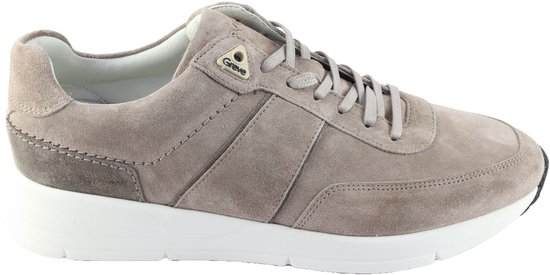 Sneaker van Greve in taupe suede. Art.Walker 7286 heeft een soepele witte rubberzool met zwart-wit loopvlak. Deze sneaker is leergevoerd. voorzien van een uitneembaar voetbed en uitgevoerd op een H-wijdte(voor de bredere voet)