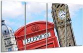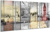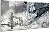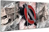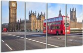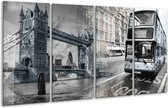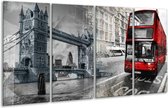 GroepArt - Glasschilderij - Engeland, London - Grijs, Crème, Rood - 160x80cm 4Luik - Foto Op Glas - Geen Acrylglas Schilderij - 6000+ Glasschilderijen Collectie - Wanddecoratie