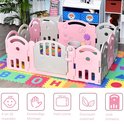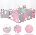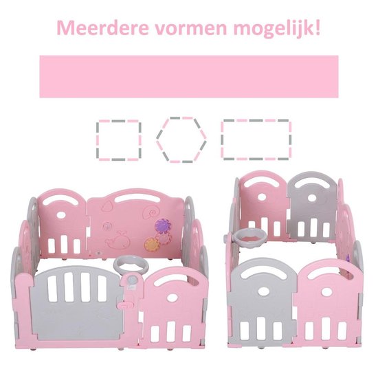 Als je gewoon een kleine pauze nodig hebt van de kleine rakkers en ze veilig wilt laten spelen zonder continue een oogje in het zeil te moeten houden. Onze grondbox is het antwoord. Het zuignapontwerp, de natuurlijke materialen en het schroefvrije ontwerp maken hem veilig en onschadelijk voor de gezondheid. Je kind zal dol zijn op de felle kleuren en schattige patronen. De speelbox is aan de binnenzijde uitgerust met een aantal items zoals een drietal tandwielen die je kind helpen zich op een natuurlijke manier te ontwikkelen. Als je ooit een pauze nodig hebt! beschrijving: ? 12 elementen bieden veel ruimte om te spelen, ? Je kunt verschillende vormen en maten maken, ? 3 tandwielen en een mand voor de natuurlijke ontwikkeling van je kind, ? Mooie en kleurrijke patronen voor kinderen, ? Elk groot element heeft 2 sterke zuignappen, elk klein element heeft 1 sterke zuignap voor stabiliteit, ? 1 stabiele verbinding tussen de 2 elementen en 4 haakse verbindingen rond de hoeken, ? Ingebouwd slot in de deur geeft veiligheid, ? Eenvoudige montage in 10 minuten, ? Licht en draagbaar, specificaties: ? Kleur: roze + grijs, ? Materiaal: HDPE, ? Algemene gegevens: L162 x B84 x H63 cm, ? Type: 10 stuks, ? Leeftijd: 6-36 maanden, ? Certificering: EN71-3, EN12227: 2010, ? Nettogewicht: 8,4 kg, , Levering: ? 1 x box, ? 1 x montage-instructies