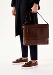 De bruine heren boodschappentas van hoogwaardig nerfleder is een uitzonderlijk elegante propositie die perfect past bij de casual en stedelijke stijl. Het zal een geweldig alternatief zijn voor een rugzak of koffer. In de vele vakken passen de meest noodzakelijke spullen, documenten en zelfs een tablet. De stijlvolle riemtas wordt een onafscheidelijke dagelijkse metgezel.