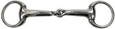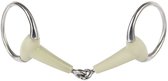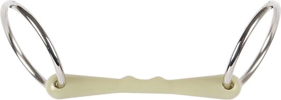 Watertrens stang van harry's horse, zacht mondstuk met appelsmaak, 19mm dik, ringen met diameter van 65mm, gemaakt van hoge kwaliteit rvs, ideaal voor paarden die andere materialen moeilijk accepteren, geschikt voor iedereen die het welzijn van het paard belangrijk vindt, de appelsmaak stimuleert het kauwen en werken ontspannend, de stof die wordt gebruikt om de bitten de appelsmaak te geven wordt ook gebruikt in de voedselindustrie, is natuurlijk onschadelijk voor het paard.