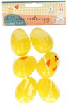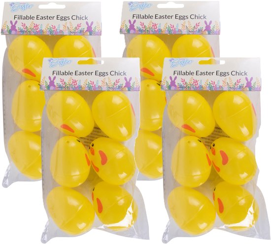 Gekleurde vulbare plastic/kunststof paaseieren setje. Zakje met 24x stuks plastic decoratie eieren in thema kuikens geel. Formaat per ei: ongeveer 8 cm. Hobby en knutsel materialen. Ophangen, vullen of mee decoreren, u bepaalt.