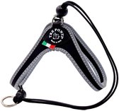 Samen met de 3 verstelbare sluitingen aan het harnas is het gemakkelijk om het bij je g om te doen. Het harnas is verstelbaar vanaf 41 tot 71 cm rond de borst & 35 tot 55 cm rond de nek.