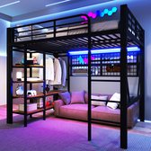 Hoogslaper - 140x200cm - praktische lades - stijlvol L-vormig bureau - laminaat design - zonder matras - wit