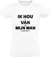 IK HOU er VAN als MIJN MAN trouwt in gemeenschap van goederen Dames T-shirt | fitness | grappig | humor | valentijnsdag | vrijgezellenfeest | bruiloft | liefde | relatie | cadeau | kado | shirt