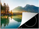 KitchenYeah® Inductie beschermer 60x52 cm - Bergen - Bos - Water - Lucht - Roze - Paars - Kookplaataccessoires - Afdekplaat voor kookplaat - Inductiebeschermer - Inductiemat - Inductieplaat mat