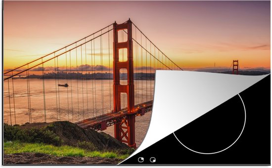 De Golden Gate Bridge tijdens zonsopgang..Productspecificaties