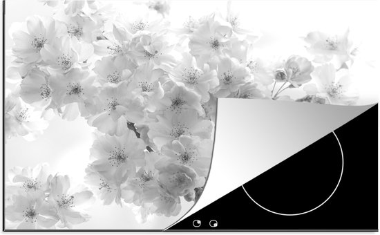 KitchenYeah® Inductie beschermer 80x52 cm - Close-up van de bloesem van een kersenboom - zwart wit - Kookplaataccessoires - Afdekplaat voor kookplaat - Inductiebeschermer - Inductiemat - Inductieplaat mat
