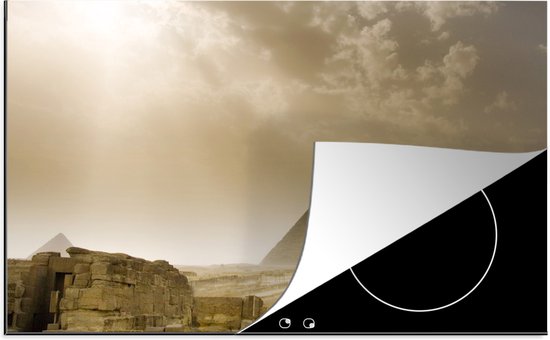 KitchenYeah® Inductie beschermer 81.6x52.7 cm - De Sfinx van Gizeh en piramide in een zandstorm - Kookplaataccessoires - Afdekplaat voor kookplaat - Inductiebeschermer - Inductiemat - Inductieplaat mat