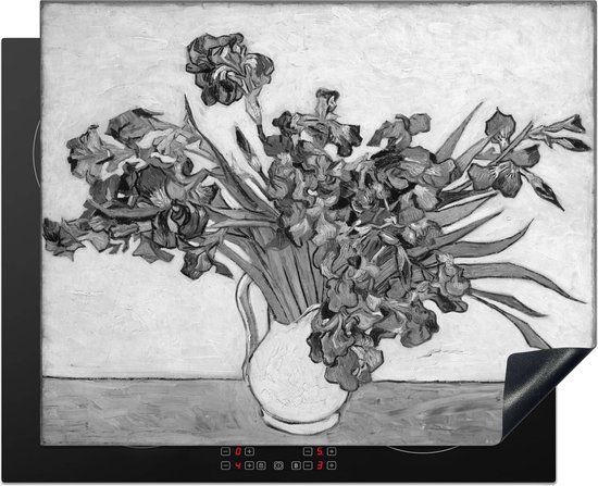 KitchenYeah® Inductie beschermer 65x52 cm - Irises - Vincent van Gogh - Zwart - Wit - Kookplaataccessoires - Afdekplaat voor kookplaat - Inductiebeschermer - Inductiemat - Inductieplaat mat
