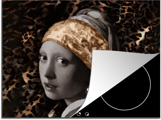 KitchenYeah® Inductie beschermer 71x52 cm - Meisje met de parel - Schilderij - Panterprint - Kookplaataccessoires - Afdekplaat voor kookplaat - Inductiebeschermer - Inductiemat - Inductieplaat mat